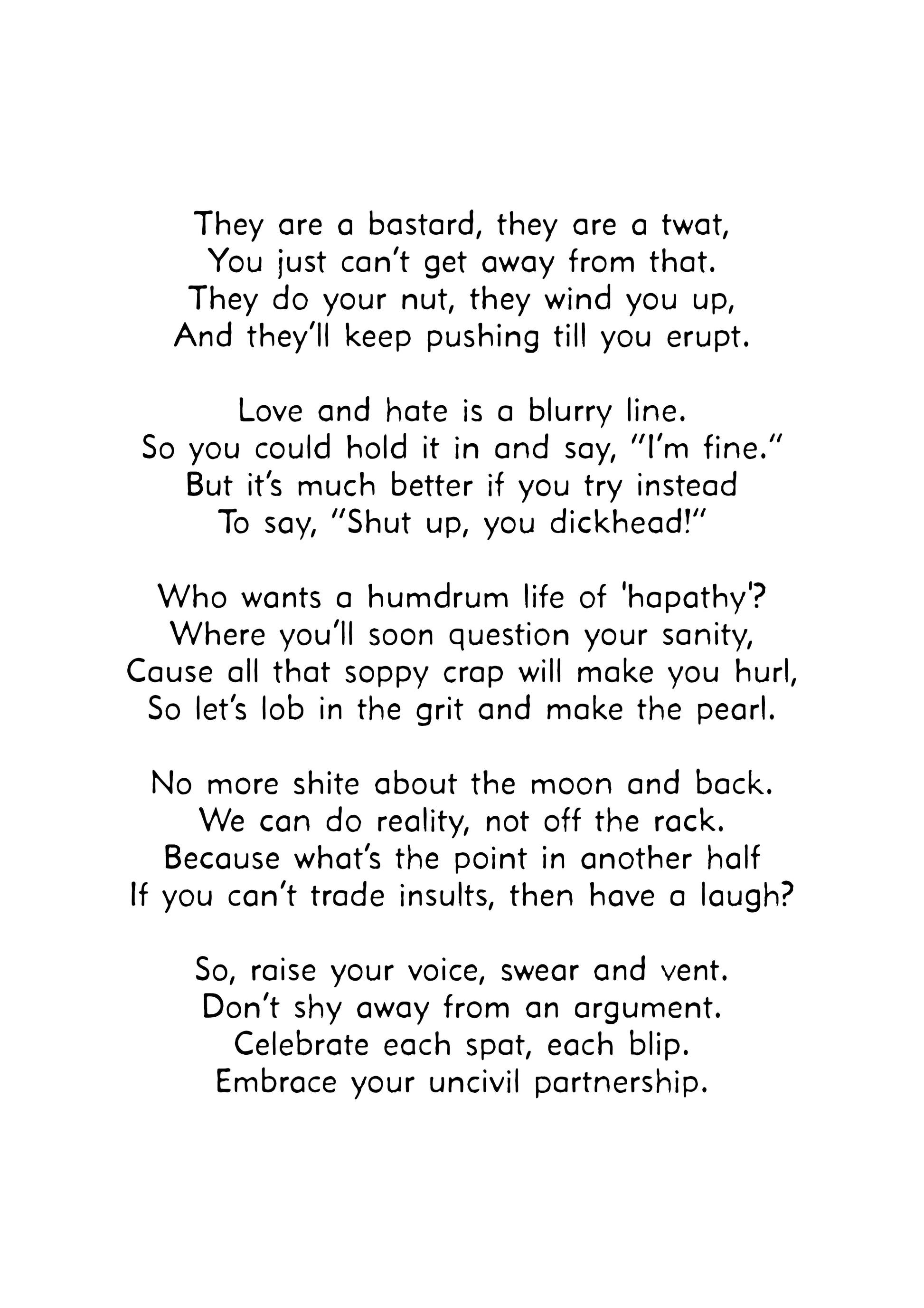 Hand pulled screenprint of a heart filled with the nation's favourite words of (not quite) endearment.